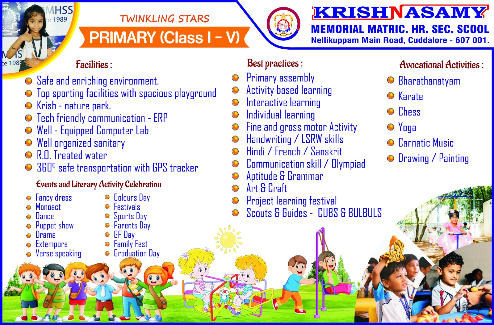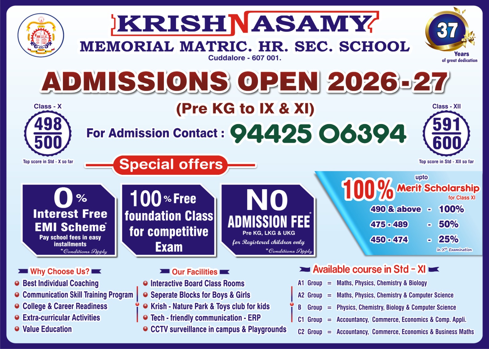 Admissions Open 2026 -27 ( Pre KG to IX & XI) Contact : 94425 06394